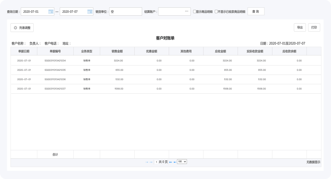自动生成客户、供应商对账单
